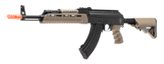 Rock it Slavic style with the Elite Force AKX EYETRACE AEG. The AKX features a built in LED tracer unit to light up your EF Tracer BBs. With a top Picatinny rail, the AKX is optics ready and fitted with standard AK-style iron sights. The hand guard has side mount M-LOK compatible slots and the collapsible rear stock is fitted with dual QR sockets making easy for you to add a sling. These parts and the ergonomic grip are all finished in Desert Tan. The AKX comes with a hi-cap airsoft magazine, smart MOSFET, an adjustable hop-up, and 14 mm negative thread barrel. It's rated at 430 feet per second and the mag holds 500 rounds of 6mm airsoft BBs. Run the full auto Elite Force ARX with an 11.1 volt Tamiya connector battery (not included).