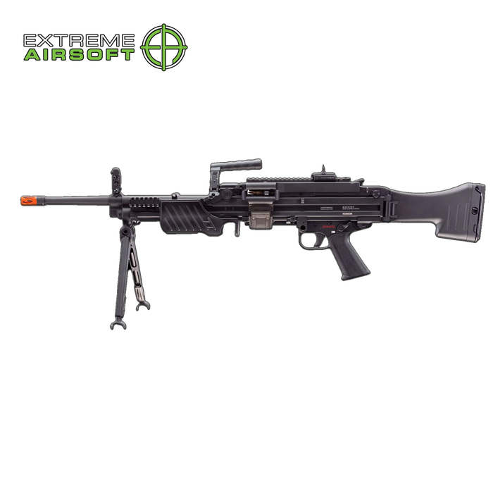 Elite Force Airsoft is bringing extreme duty Heckler & Koch firepower to the AEG line with the HK MG4 "belt fed" airsoft machine gun. This AEG features smart circuitry that will detect the battery type and size you are using as well as over-heat protection. With a 4,000 round detachable box magazine and a 900 round internal hopper (do not fill and use both at the same time) and adjustable hop-up, the MG4 can really send it with mad intensity. The MG4 is equipped with an integral folding bi-pod, side mount Picatinny rails, folding stock with folding wire shoulder support, and folding carry handle. The 4,000 round detachable magazine is powered by the gun's battery and will reliably feed BBs while you have the MG4 deployed. This lightweight, compact machine gun of high airsoft firepower can be carried by one soldier providing full mobility in difficult terrain and in the urban environment.