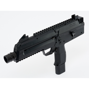 The Umarex Steel Storm Tactical BB gun has a 30 shot capacity, with a 300-round reserve. The Steel Storm shoots as a semi-automatic, but can run full-auto 6 round bursts, too. The Steel Storm is a compact pistol powered by dual 12 g CO2 capsules housed in a drop out magazine for ease of access. If you are looking for a compact powerhouse, this is it.