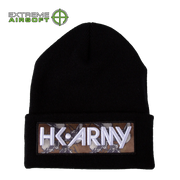 The HK Army Hostilewear Beanie series is a single cuff body design featuring soft, medium-weight materials, with a large typeface patch applied to the front and the signature "X" icon logo embroidered on the backside. The Hostilewear Beanie is warm, comfortable and protective if used in game-play or equally stylish to wear off the field.