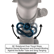 QD Sling Swivel Housing Designed with Quarter-turn Rotational Over Travel Stops to Restrict Swivel Movement and Prevent Binding Against the Buffer Tube and Sling Tangling