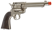 Its overall build quality is unmistakable. The finish, the look of the grips, the fit and feel and its weight are reminiscent of the original single action six shooter of 1872. While this one slings six millimeter airsoft BBs instead of lead, the Legends Smoke Wagon is an authentic six shooter right down to its individual ejecting metal shells.The iconic persona of the single action six shooter has been faithfully captured.