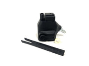 This is a custom designed laser sintered nylon adapter that allows you to use HPA (high pressure air) and Echo1/Cyma MP5 AEG magazines on your Hi-Capa airsoft pistol. To use it you will also need an MP5 AEG magazine, “paintball” tank with low pressure regulator (0-140) psi, a hose with a Foster (polarstar) quick disconnect and of course bbs. The normal operating pressure for green gas is roughly 120 psi depending on the temperature. We recommend that you run you pistol near this pressure and do not exceed 140 psi. Keep in mind that higher pressures can cause excessive wear and damage to the internal components of your airsoft pistol.