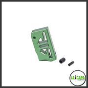 The LA Capa Customs S2 Flat Trigger features 12 unique anodized and heat gradation colors. It comes with an adjustment screw to shorten trigger travel, and it has an aggressive design. It is perfect for any hi capa build!