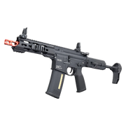 The next generation of variable FPS Ronin AEGs have arrived. KWA’s upgraded VM4 AEG 2.5 gearbox are now drop-in trigger ready allowing users to employ their favorite MOSFETs or electronic triggers to maximize weapon performance. The Ronin T6 PDW is stacked with features derived from extensive user feedback; from the redesigned MLOK handguards, improved PDW stock, ambidextrous charging handle and KWA’s brand new SOCOM-style muzzle brake, the T6 is once again ready to dominate the playing field.