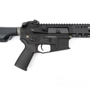 The PTS Radian Model 1 ERG is an innovative electric recoil system (ERG) airsoft gun, blending patented design with superior functionality. Its proprietary M-LOK compatible rail seamlessly integrates with the billet-style upper receiver, making the entire assembly ultra-rigid. It features the Radian Raptor ambidextrous charging handle and the Talon ambidextrous safety selector for easy control by both left- and right-handed shooters. Equipped with A-DAC patented technology, handling is smooth for all users. The rifle includes PTS Enhanced Polymer Grip, Backup Iron Sight, Magazine, and Stock, with a pre-installed KWA AEG 3.0+ electronic trigger unit.