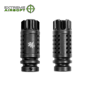 The Griffin M4SDII Flash Comp is Griffin's flagship product. It combines the distinctive design and functional recoil control ability of the Griffin M4SD Tactical Compensator with increased flash suppression capability via the addition of the 3 pronged tips to provide the optimal balance of recoil control and flash suppression with minimal compromise for both functions. The Airsoft version has been designed to be compatible with any A2-compatible suppressor mount including the PTS Griffin Armament M4SD Suppressor (coming soon)