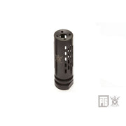 PTS BattleComp® muzzle devices are the highest quality and most accurate Battlecomp replicas on the market. They are made from heat treated steel alloybar stock with a scratch and blemish resistant black oxide finish. A crushwasher and shim kit are included to ensure proper alignment of the muzzle device onto your airsoft rifle.