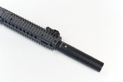 The PTS MK18SD Mock Suppressor w/51T Flash Hider - Black. Fits on all 14mm CCW threaded barrels. A two piece set that includes the suppressor and the metal flash hider it's paired up with.