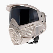 Increased profile version. Added protection with a larger facemask and ear pad. Dual silicone strap 2” wide with adjustable length.