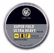 RWS Superfield Ultra Heavy 9.7 grain .177 caliber pellets pack a hard hitting punch. For those of you who shoot .177 caliber and want to maximize power and distance, these clean, precisely manufactured domed pellets are 39% heavier than standard lead pellets. RWS Superfield pellets are packed in a 500 count tin.