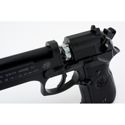 The Beretta M 92 FS has been adopted by the Military, Police, and Special Forces throughout the world. Now, based on the original design, this unbelievably realistic CO2 powered Beretta air pistol is destined to become a "must have" for every air gun collector and shooting enthusiast. M92 owners won't believe the realism and accuracy offered by this Beretta pellet gun. Packed in a foam-lined plastic gun case. Two 8-shot rotary magazines included.