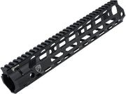 The REV® II M-LOK® features the Magpul M-LOK®mounting system, a modular rail system that decreases overall gun weight andincreases customizability. The M-LOK® is utilized on the 3, 6, and 9oclock positions and runs down almost the entire length of the rail, allowingthe user to attach an abundance of lights, grips, rail sections, and all otherM-LOK® accessories. There are also four rotation limited QD socketsat the front and rear of the rail at the 3 and 9 oclock positions to allow forthe usage of a 2-point sling.