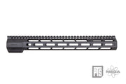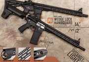 The PTS® Mega Arms “Wedge Lock” Handguard is a very sleek, modern looking MLOK compatible handguard that is skeletonized for lightweight without compromising strength. The handguard’s narrow cross-section provides for an excellent ergonomic grip and has slab sided surfaces for improved shooting stability off supported positions. It is given its name due to its extremely tight but very simple rifle mounting system design. The "Wedge Lock" system consists of two wedge-shaped planes, both at complementary angles that push against each other by simply tightening a screw, thus creating tension between the handguard and the barrel nut. The Wedge Lock provides for a very rigid mount between the rail and the receiver which also ensures superior accuracy of aiming accessories such as lasers even from supported positions.