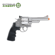 This version of the M29 is equipped with a 5-inch barrel and a smooth chrome finish. The grips are ergonomic black rubber style and the left side removes for easy installation and removal of the 12-gram CO2 cartridges used to power this airsoft pistol. You can expect .20 gram BBs to fly at a field-safe 330 FPS. Additionally, this DA/SA revolver uses Elite Force 6mm shell casings to hold 6 BB stuffed shells in the revolving cylinder.