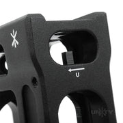 The PTS Unity Tactical FAST™ Micro Mount features built-in standard height back up iron sights (BUIS) that keep your airsoft gun uncluttered without reducing capability. The FAST’s built-in front/rear BUIS is perfect for backup on super short PDW/SMG platforms where rail space is critical for mounting lights and lasers. Also, the front sight post can be removed so that the rear BUIS aperture can be used with a traditional front sight such as the PTS FUSION folding front sight, creating a more conventional sight radius. Both front and rear BUIS are completely adjustable for windage and elevation.