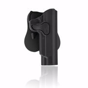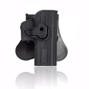 The Cytac OWB Holster is constructed of high-tech polymer, and perfectly fit for each specific airsoft pistol. This fitted holster has a quick-release/quick-locking button that allows for a quick draw and automatic locking when your gun is reholstered. They are designed for easy access and drawing your pistol without impediment, and can rotate 360-degrees to adjust the holster cant for ultimate versatility. These OWB pistol holsters are very comfortable with their soft silicone paddle to securely fit holster to belt. They provide a fast and easy draw while still proving great retention. This gun holster is worn outside the waistband.