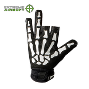Featuring a sleek, form-fitting design, neoprene-padded hand protection, custom printed bones silicone palm grip, TPR bones on the top of the glove and low-profile velcro for easy release, the Bones glove is both lightweight and protective. Furthermore, the two-finger-less design allows for optimal rapid firing.