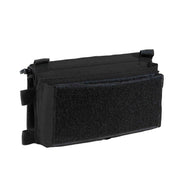 Minimalist design for low profile and quick magazine access. Collapsible, fold-away top flap covers both compartments when not in use for magazines.