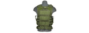 - Vest zips up in front and can be secured additionally with a pistol belt threaded through the loops on the bottom