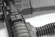 The CQD Forward Sling Mount (CQD-FSM) is designed to be used in conjunction with the CQD Rear Sling Mount and the CQD Two-Point Sling when a second, adjustable front sling mount is desired. It allows the operator greater flexibility in configuring an individualized weapons sling retention system. The Forward Sling Mount can also be used with a three-point sling to create the same sling setup on an M-4 as used on an MP-5.