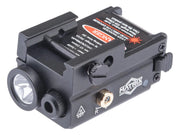 - Compact design with dual flashlight and green laser functionality